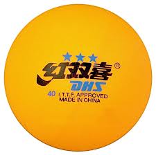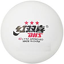 La pelota es esférica y tiene un diámetro de 40 mm, y un peso de 2,7 g. Será de celuloide o de un material plástico similar, blanca, amarilla o naranja. Hasta hace unos años (aproximadamente año 2001), el diámetro de la pelota era 38 mm, pero fue aumentado a 40 mm con la finalidad de conseguir puntos más largos y una mayor visibilidad en las retransmisiones por televisión